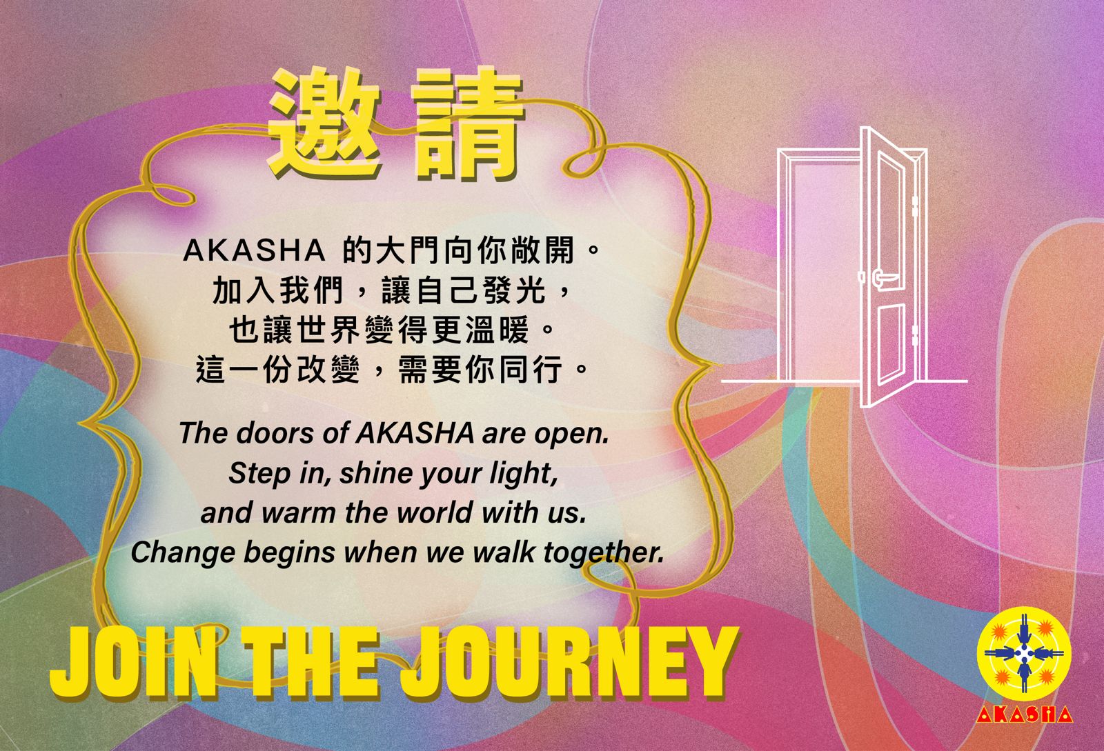 AKASHA 的力量,從來不屬於某一個人,而是所有參與其中的人。無論你是參加過一次活動,還是一直默默關心我們;無論你是志工、學員,或只是遠方的朋友,只要你願意關心、支持,你就是 AKASHA 的一份子。