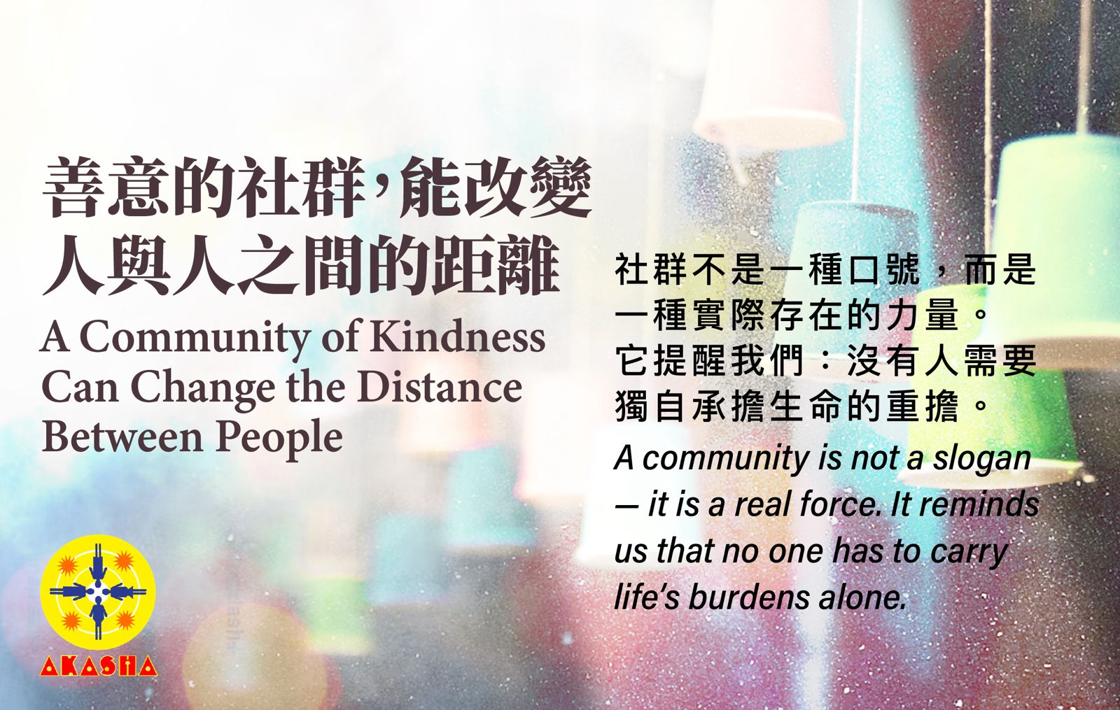 孤單的人,難以獨自走得太遠;但一群人,卻能彼此扶持,走過生命的低谷。AKASHA 相信,社群是最天然的支持系統。