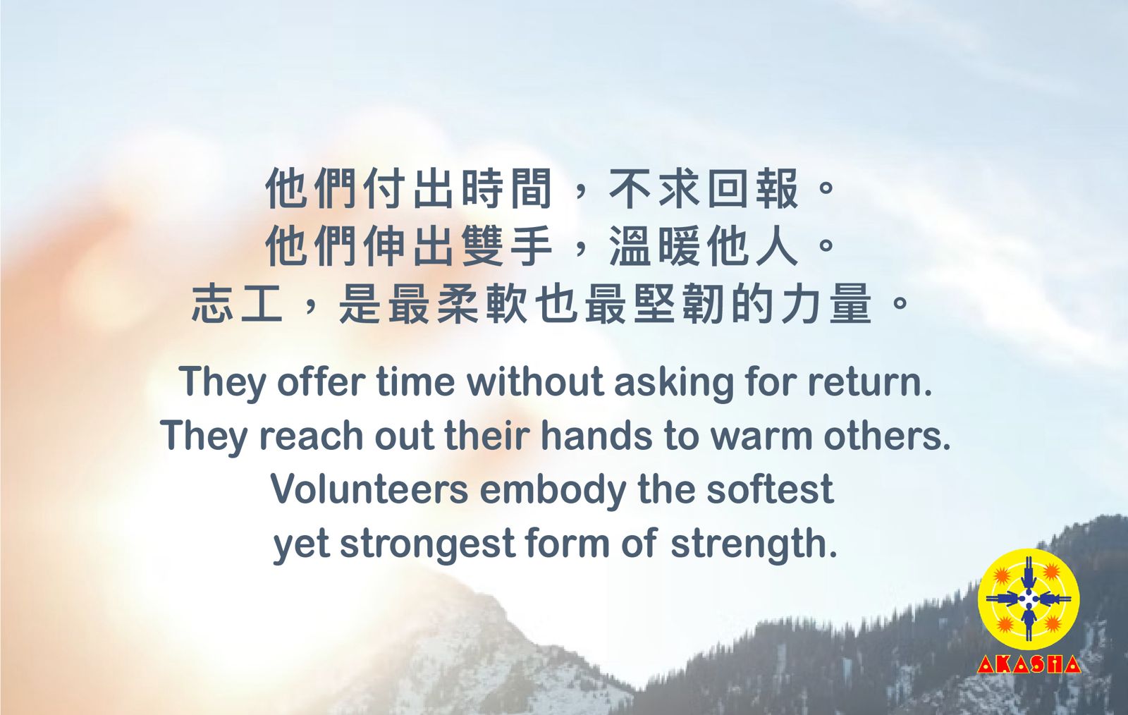 AKASHA 的實踐,離不開志工的付出。這些人並非因為酬勞而參與,而是因為他們相信:生命,是可以彼此支持的。志工們投入時間、精力與愛心,為每一個活動注入溫度。